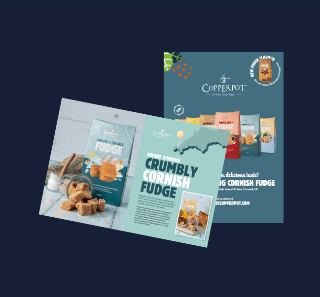 The brochure features Copperpot’s award-winning Cornish fudge, handcrafted in St Ives, Cornwall. It highlights classic and new flavours such as Clotted Cream, Caramel and Sea Salt, and Chocolate and Orange, all made with high-quality ingredients and traditional cooking methods that deliver the signature crumbly, buttery Copperpot texture loved across the UK and beyond.