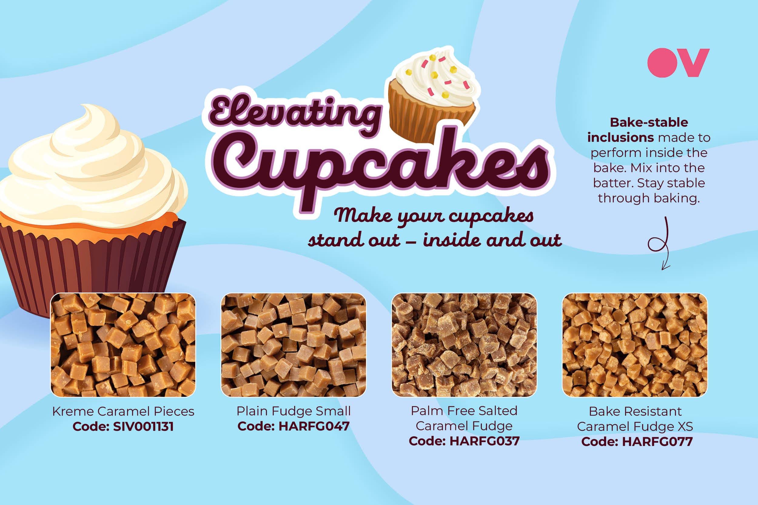These products are engineered to hold their shape and softness during baking, delivering consistent results batch after batch. Whether you want a smooth caramel note, a soft fudge texture, or a subtle indulgent surprise inside, inclusions help transform a standard cupcake into a premium product.