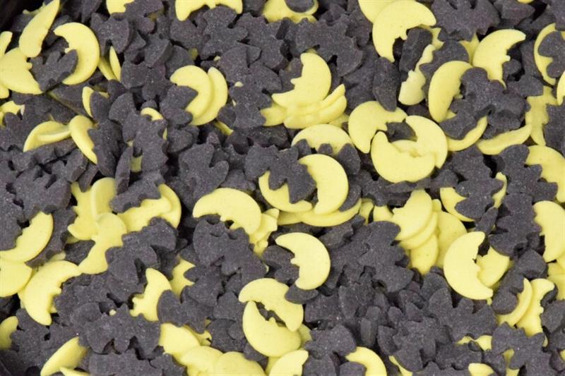 Black bats and yellow moon sugar shapes