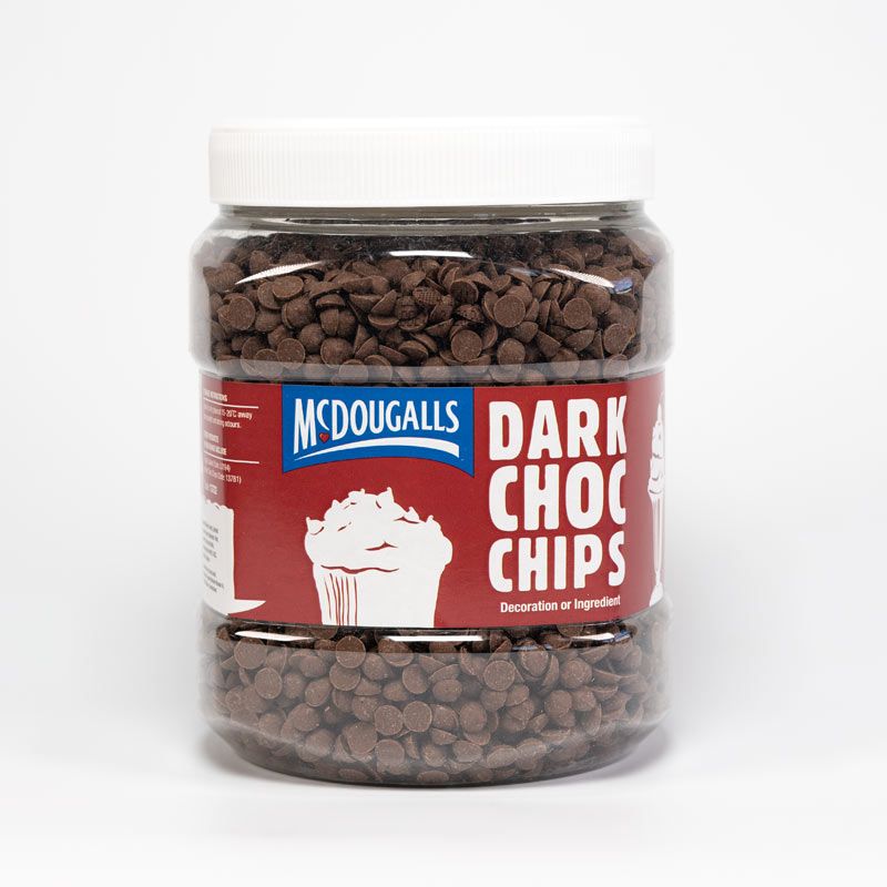 Dark chocolate compound chips 5-7mm with flat bottom and peaked top from McDougalls®. All products are part of OV’s wide selection of confections, decorations, and inclusions for professional foodservice use. *Please reach out to your local OV sales representative for information about the local MOQ