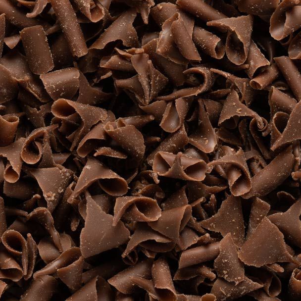 Curled pieces of milk chocolate. Please note that our Drops, Chips, Chunks & Curls range are not available on all markets, please contact your local OV representative for details*