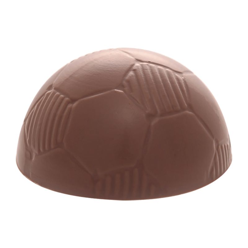ChocoDecs® Dome Football half-shell made with milk chocolate (Rainforest Alliance Certified Cocoa). Please note that the MOQ can vary for market to market, please contact your local OV representative for details