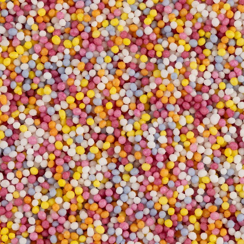 Purple, pink, white, orange and yellow coloured micro sugar balls / Nonpareil / 100&1000s