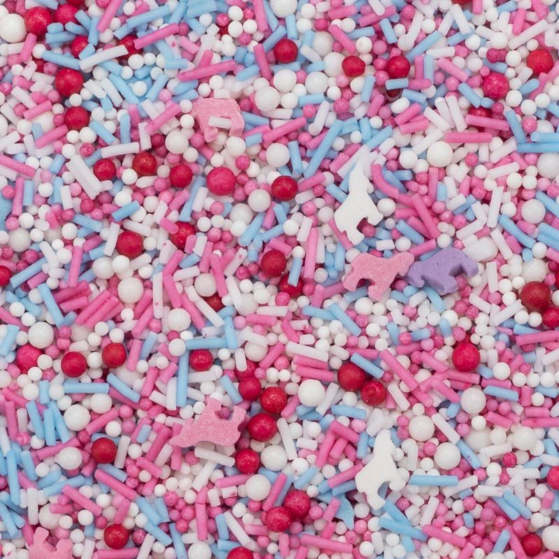 Blue, Pink And White 00's And 000's, Blue, Pink And White Sugar Strands And Blue, Pink And White Sugar Unicorns. Please note that the MOQ can vary for market to market, please contact your local OV representative for details.