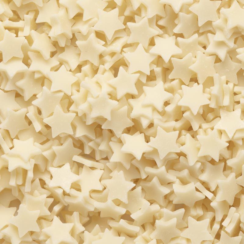Star shaped white chocolate pieces. Please note that the MOQ can vary for market to market, please contact your local OV representative for details.