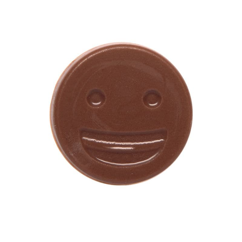 ChocoDecs® solid chocolate decoration Emoji Grinning Face, made with Rainforest Alliance Certified™ cocoa. Please note that the MOQ can vary for market to market, please contact your local OV representative for details