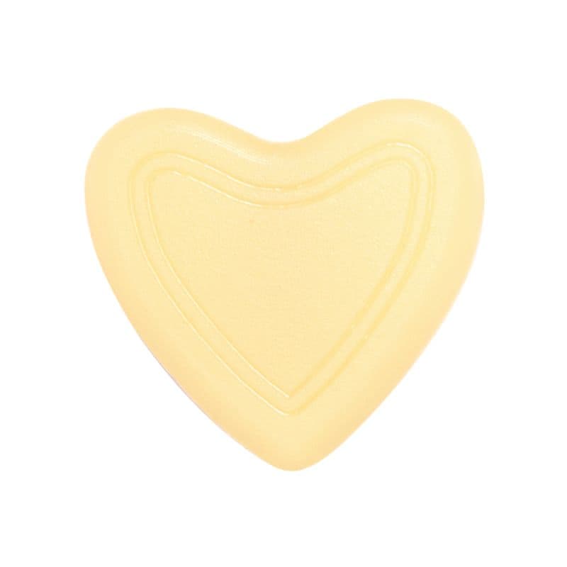 ChocoDecs® solid white chocolate decoration Heart (medium), made with Rainforest Alliance Certified™ cocoa. This chocolate decoration also comes in a red chocolate version