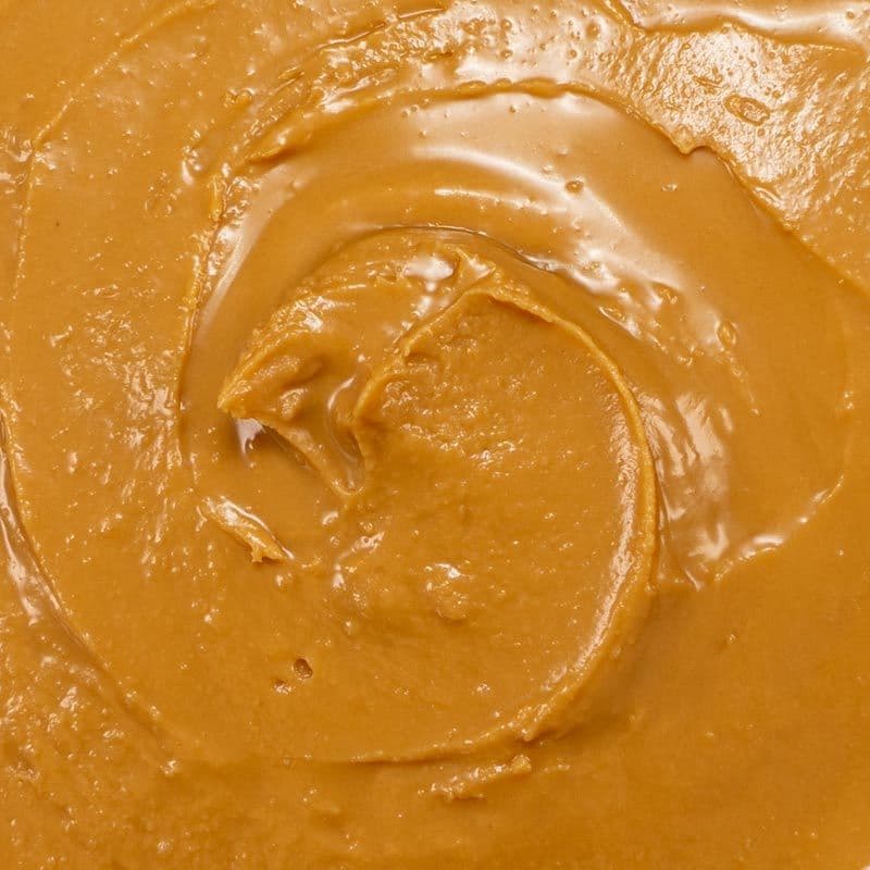 Golden brown fine grinded paste made from caramel brûlé pieces / caramel brulee.
