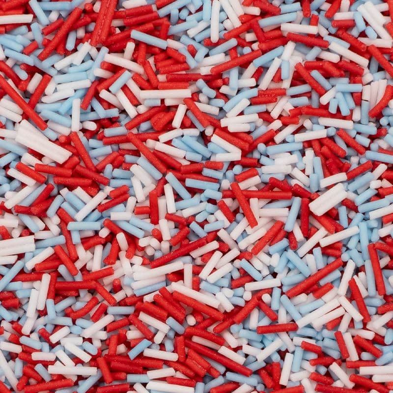Red, white and blue coloured sugar strands. Please note that the MOQ can vary for market to market, please contact your local OV representative for details.